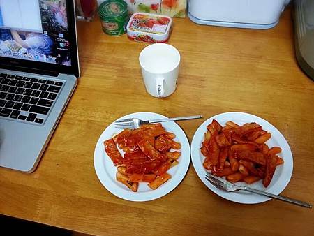 她今天也不出門.........阿姨準備辣炒年糕當午餐和她一起吃......